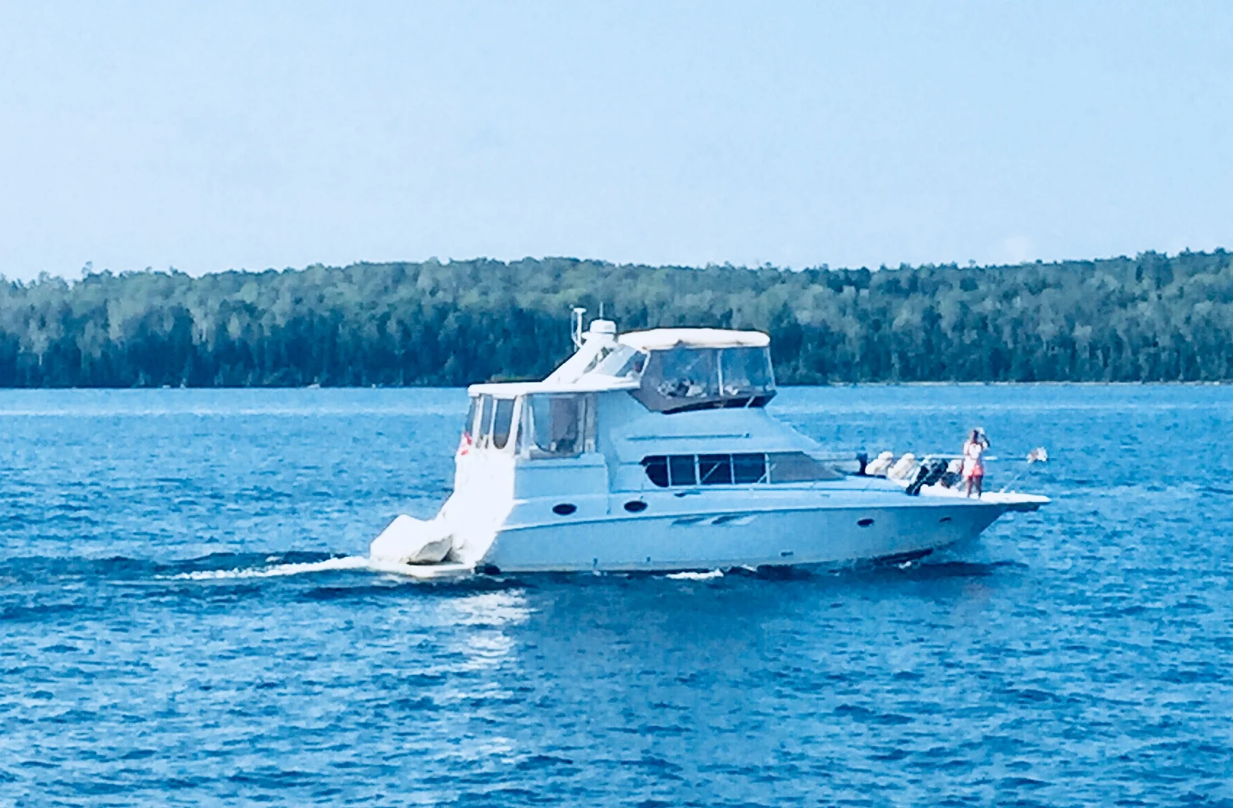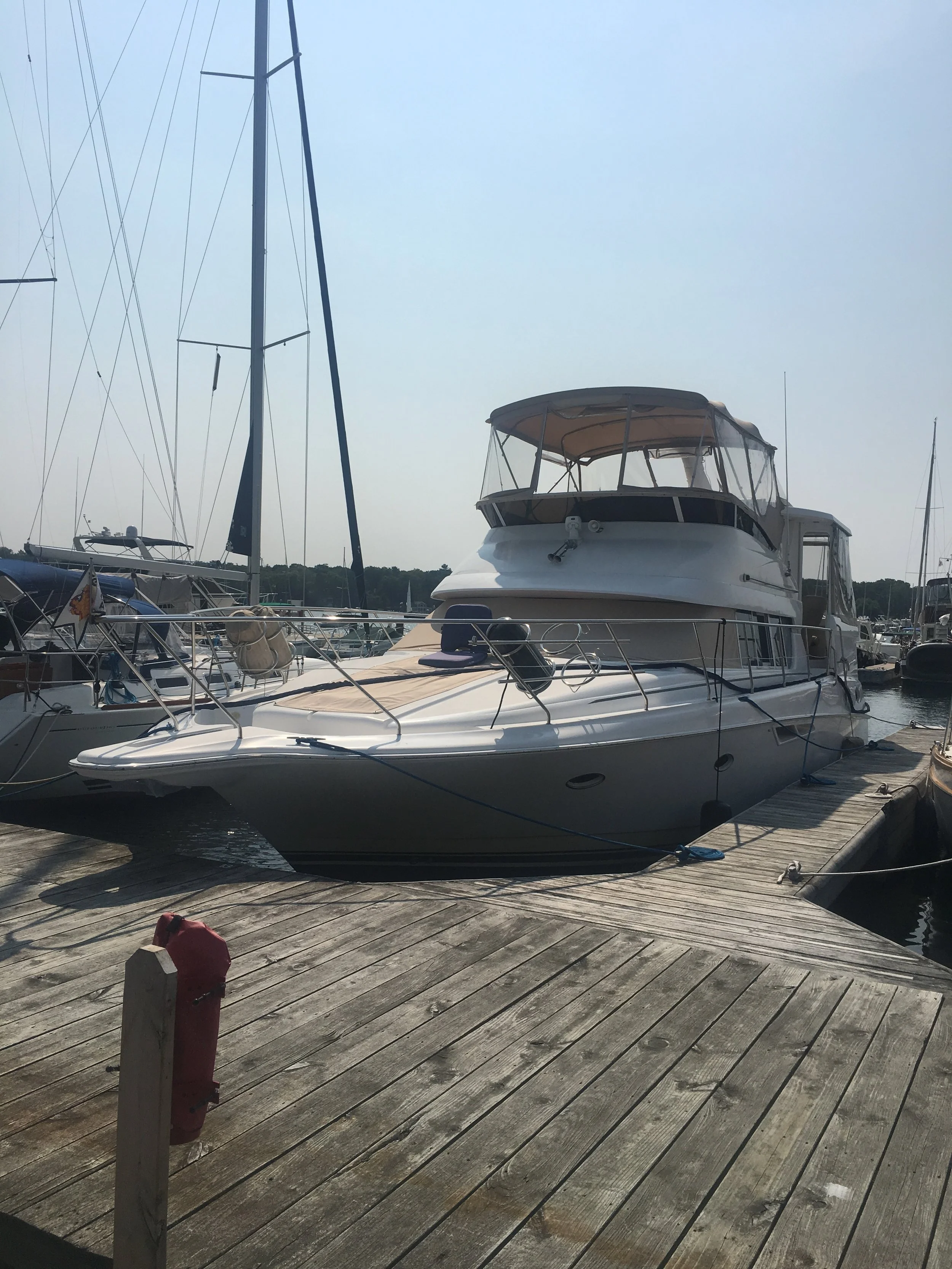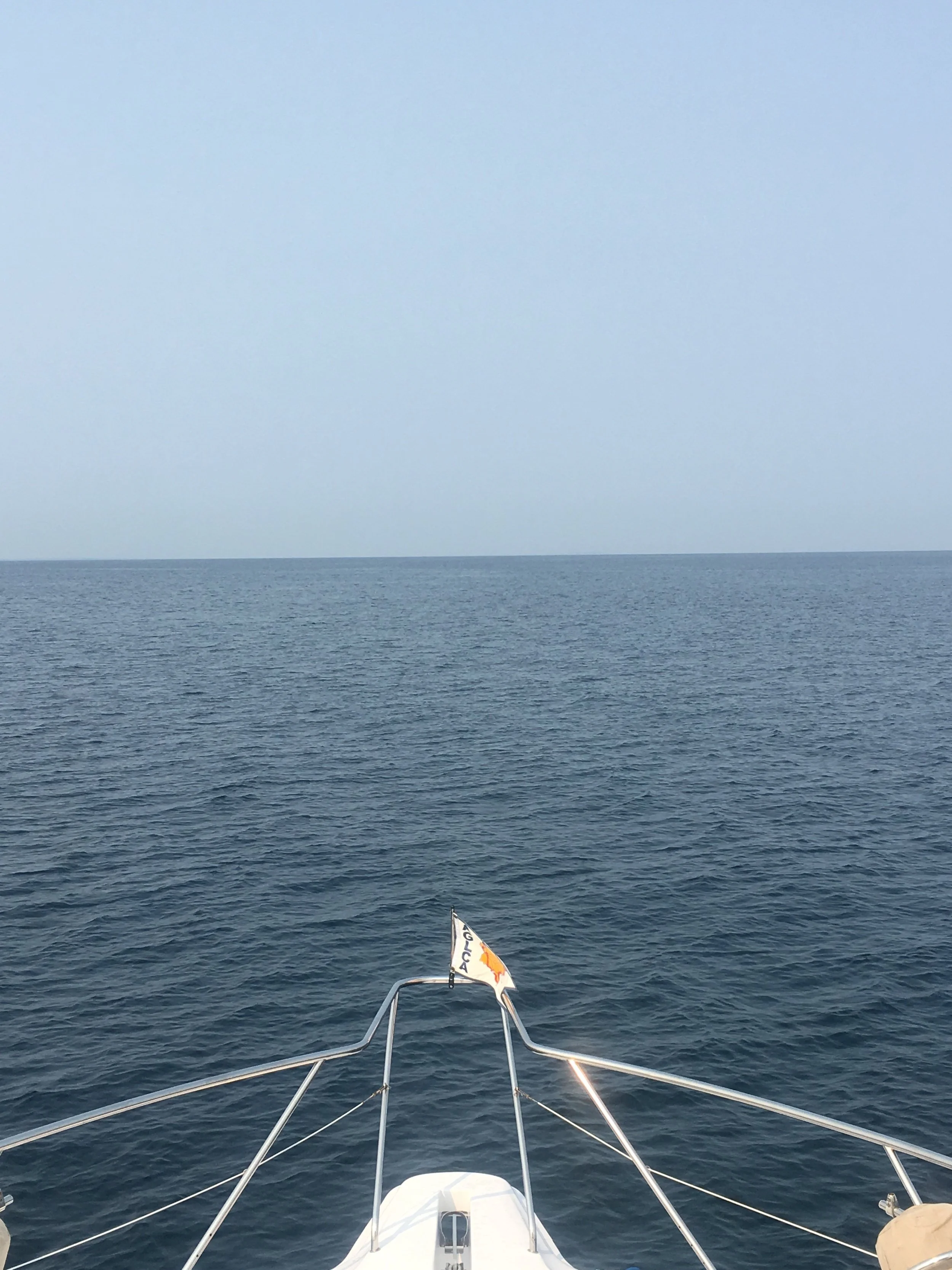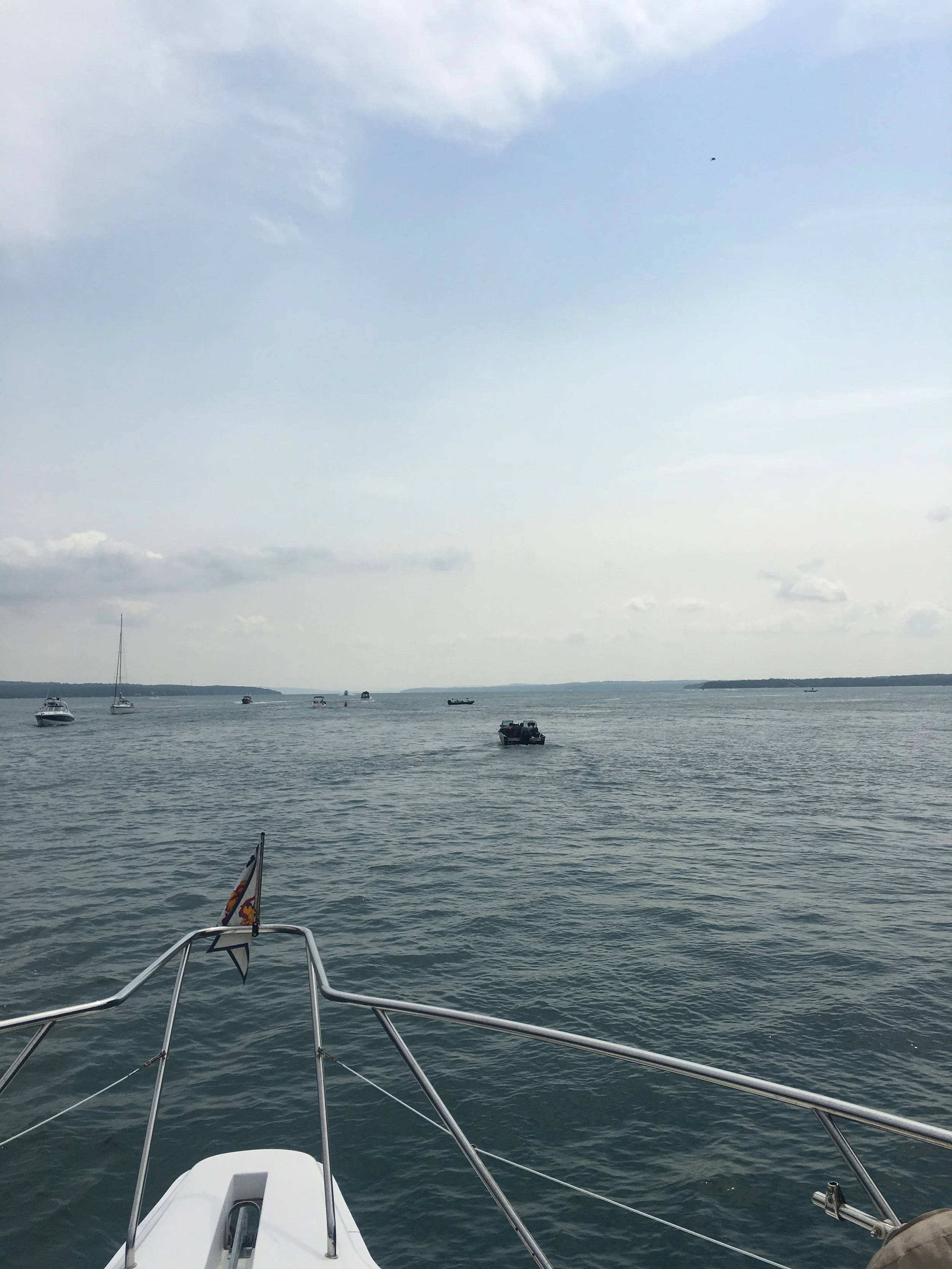We crossed the Canadian - United States Border in the North Channel, on Lake Huron on Sunday August 12, around 1:00 in the afternoon. It was pretty exciting for the two of us. I could feel the difference, and interestingly enough, both of our phones redirected to AT&T, my data plan returned to my IPad and the sky, the air and the scenery changed. I had told Jim in the morning that I must jump in the Lake, because I hadn’t done that yet. He waited until we were right at the water Border, shut the engines down, and in I went. 200 feet of water under me, I swam in my second Great Lake - Huron! I took a few strokes left, and a few strokes right, just so I felt that I had swam both in Canadian water and USA water. It was so bitchen, and I felt like a real badass! Like really, Who gets to do this!