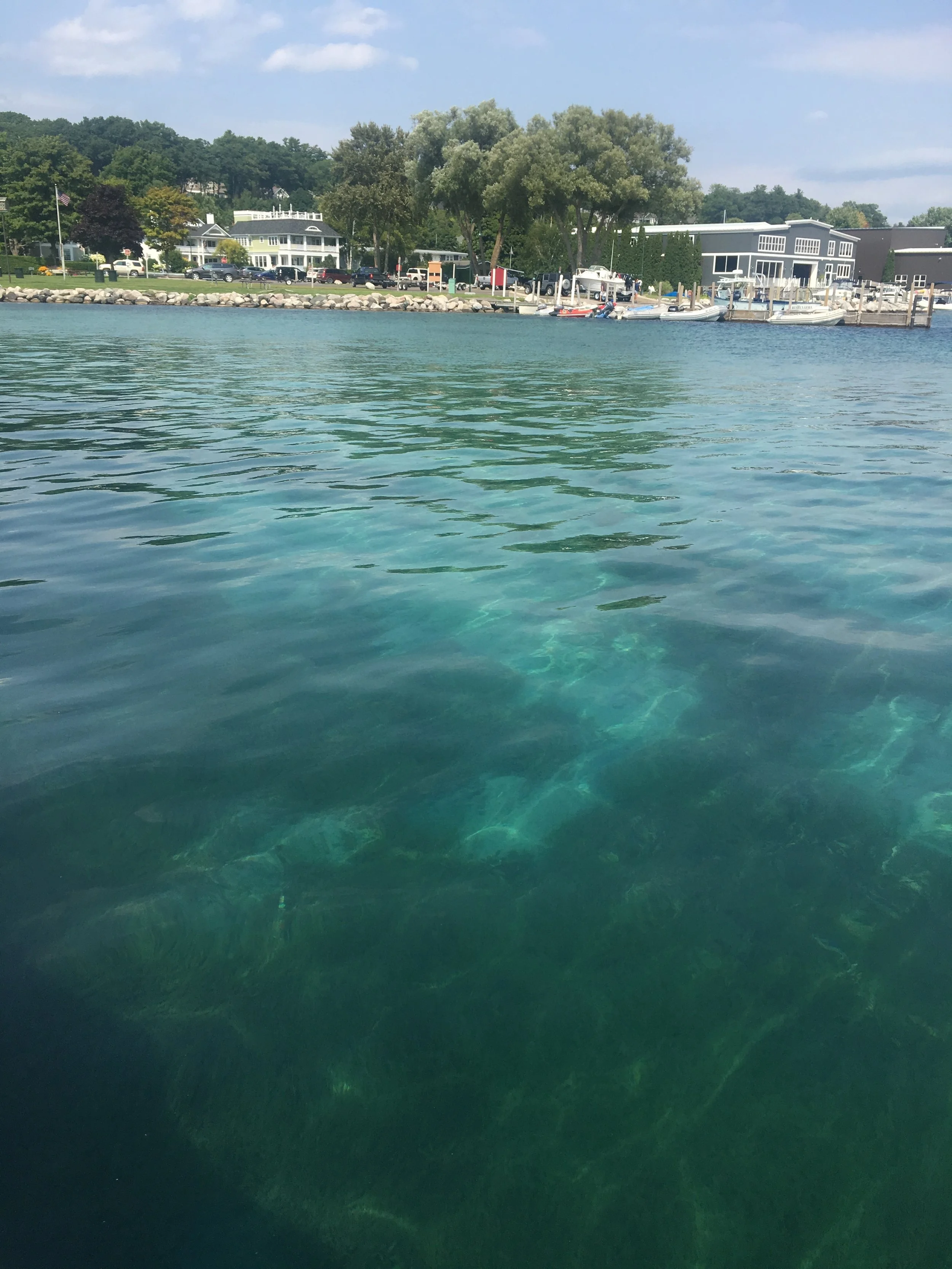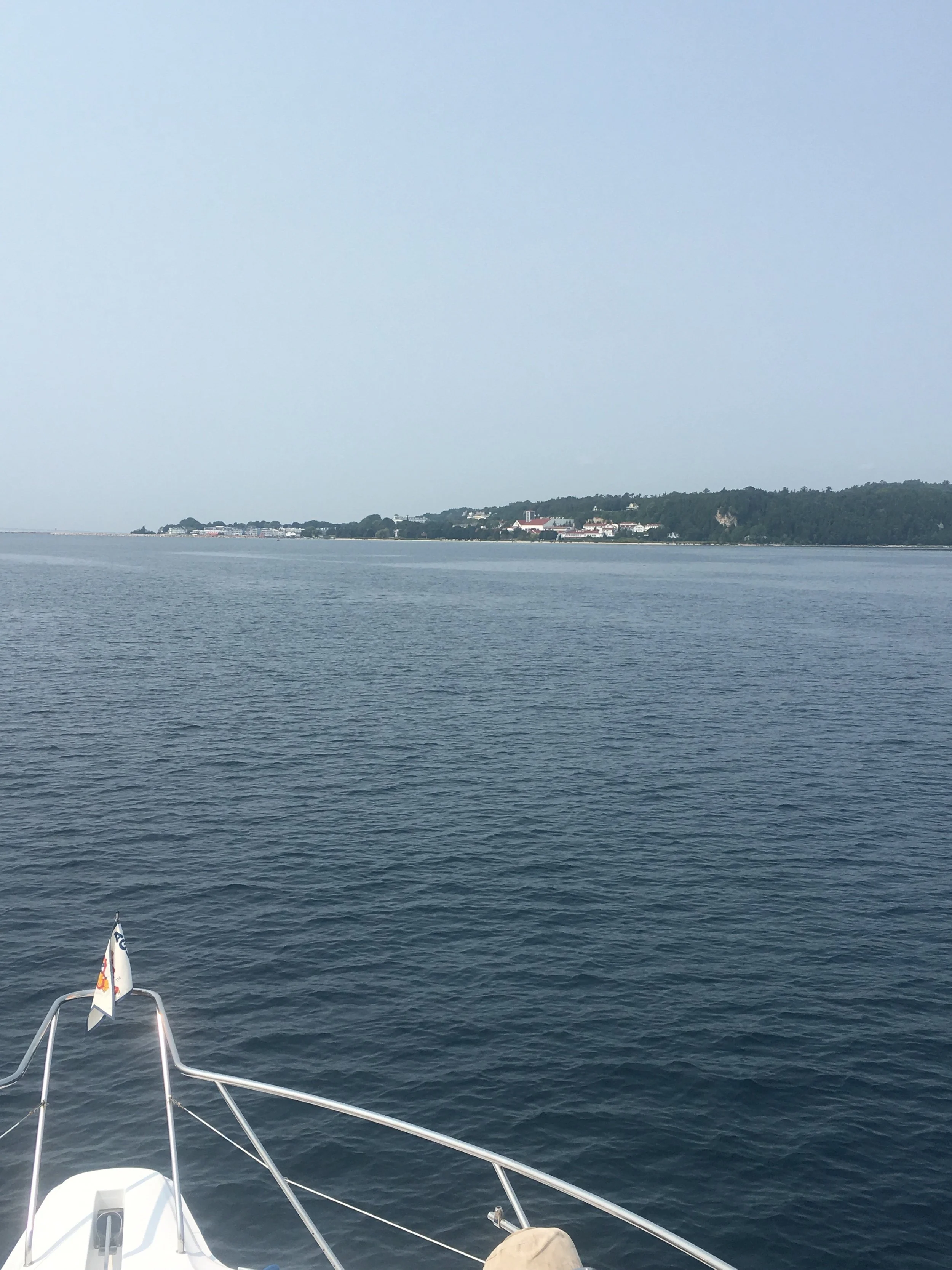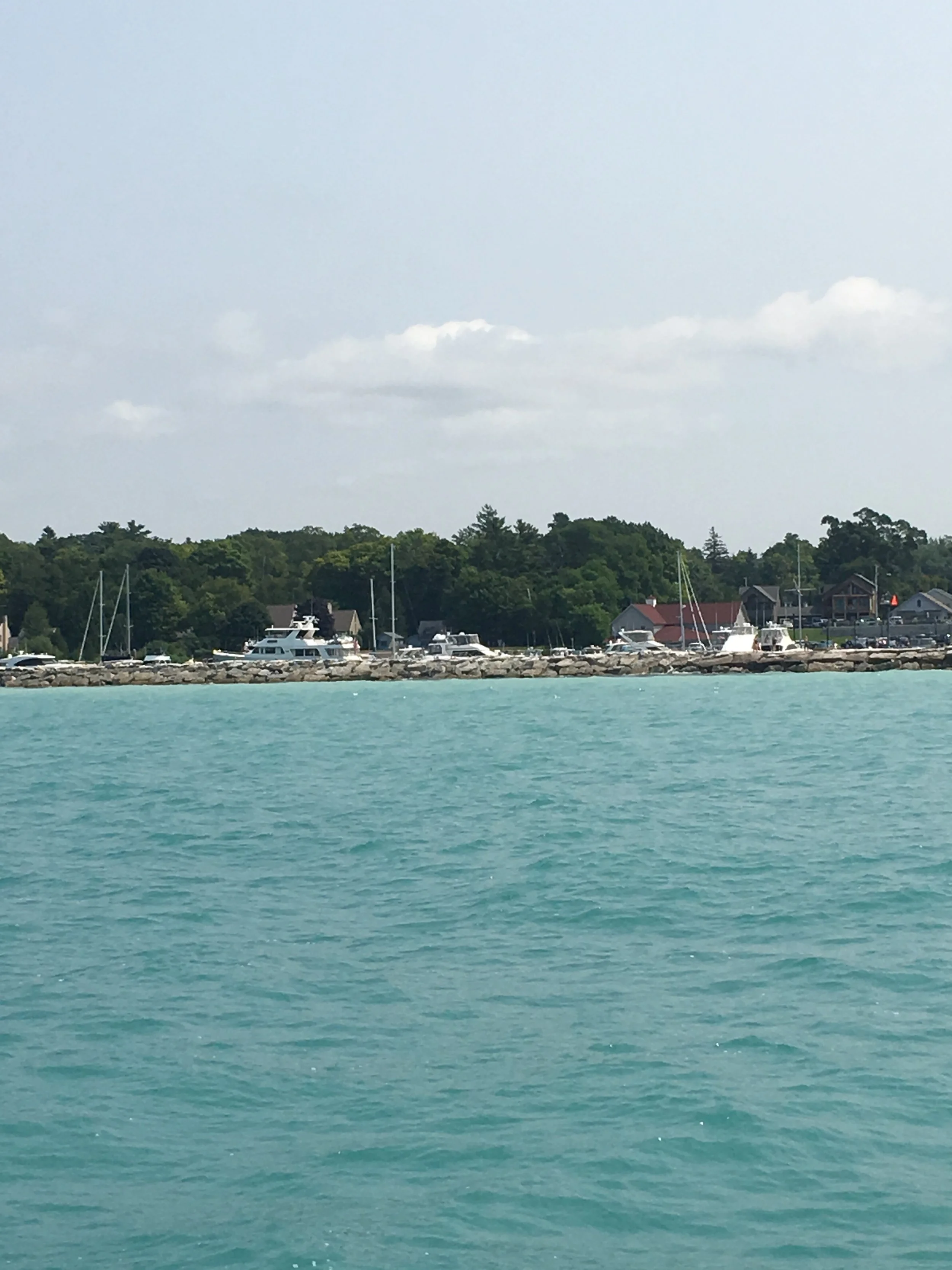 Monday, we set our sights on a Lake Huron crossing to Mackinaw Island and our destination for a few days, Mackinaw City. This was a big water day on Lake Huron. The water here is so blue! In certain places near land it has an iridescent aquamarine emerald color.