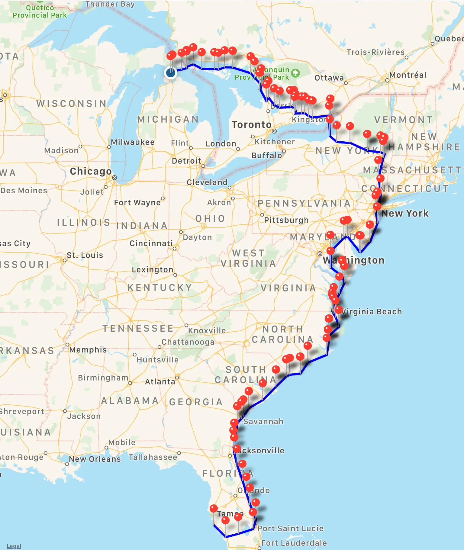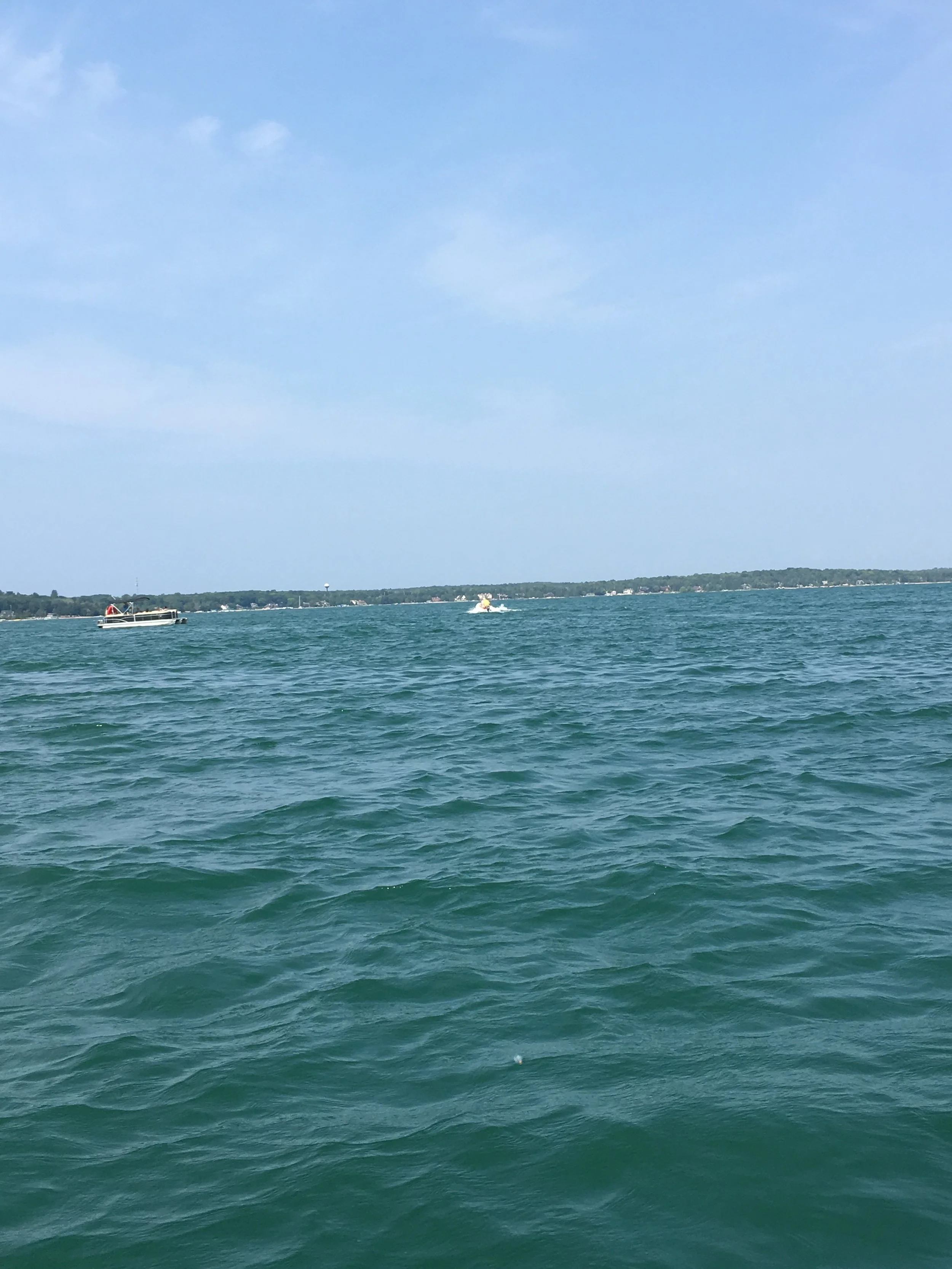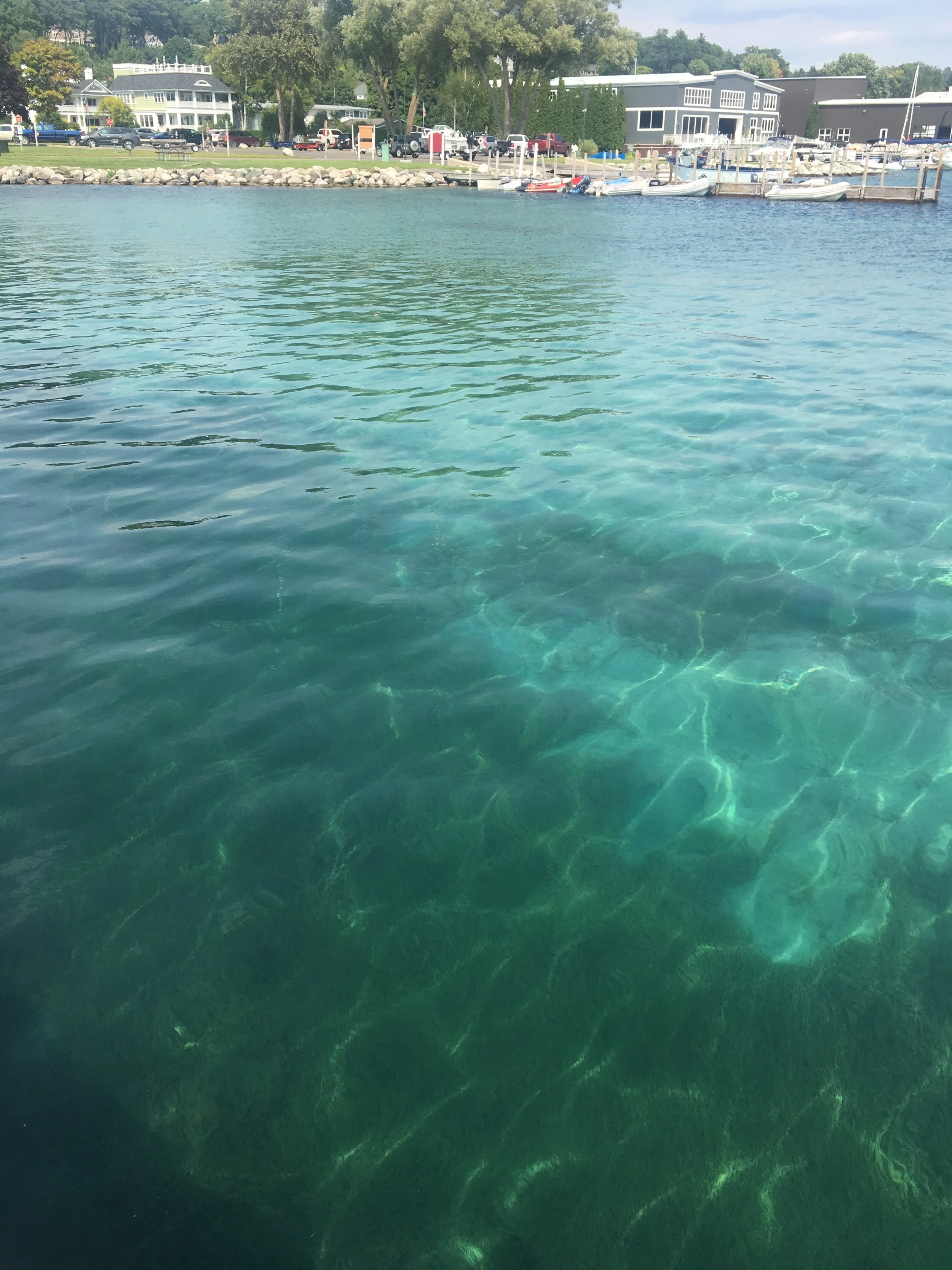 Monday, we set our sights on a Lake Huron crossing to Mackinaw Island and our destination for a few days, Mackinaw City. This was a big water day on Lake Huron. The water here is so blue! In certain places near land it has an iridescent aquamarine emerald color.