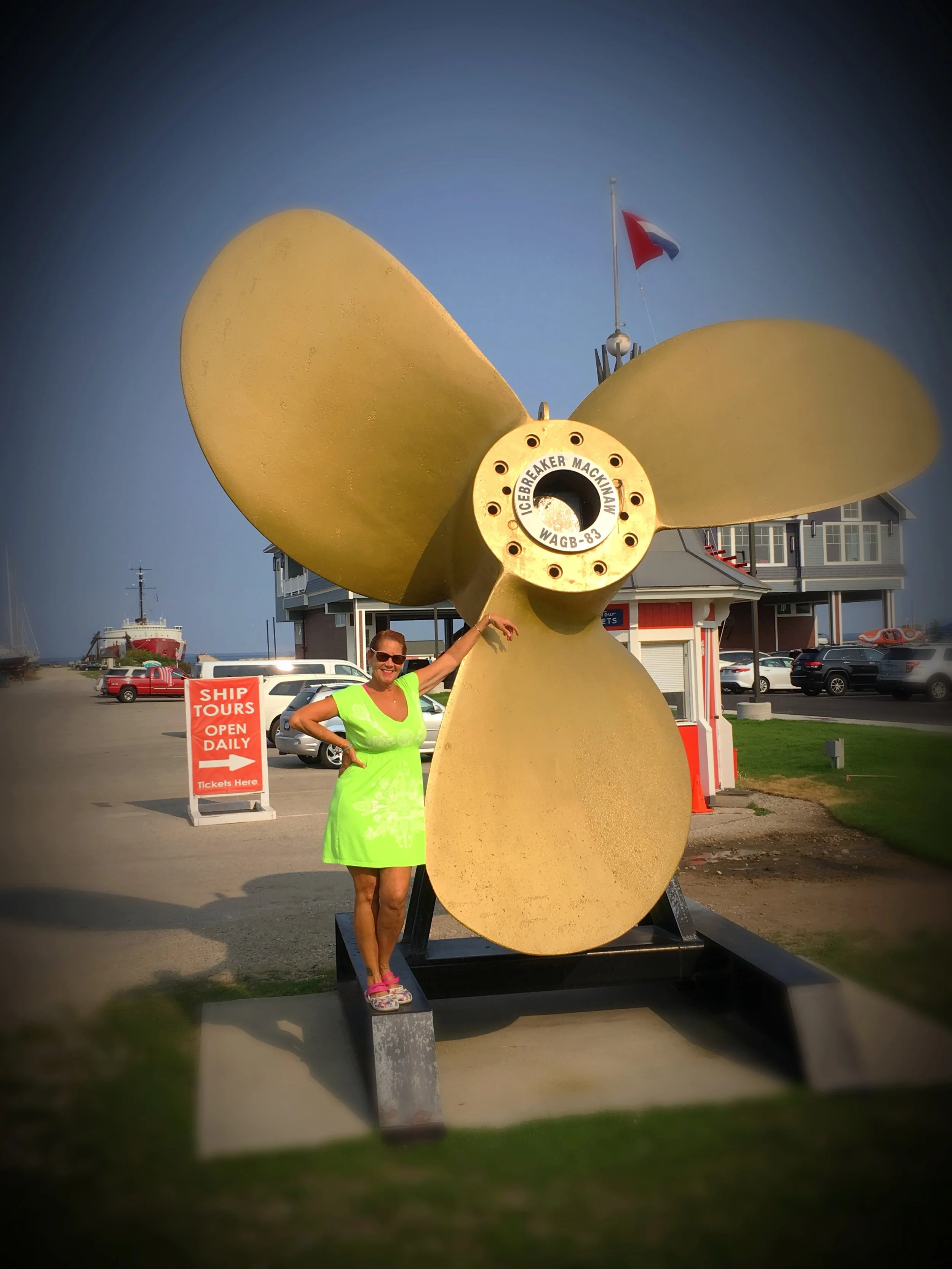 We chose to stay in the city because we heard that docking at the Island could be a bit crowded, and because Ferry Boats come in all day long, we would probably bob like a cork most all day from their wakes. We checked into Straits State Marina in Mackinaw City and settled in. We wandered into the city itself, with dinner in mind, because we had nothing but tomato soup on board! We had not been to a grocery store in several days and the faire on board was slim to none. Provisioning for on board is a science. Our refrigerator is not that big and you don’t want to buy a whole lot of stuff because it will go bad, fast. Plus, whatever you do buy, you have to carry back to the boat. 10 bags and a flat of waters is a bit much, and Uber doesn’t exist here. So Pizza it was! And was it good! We haven’t had a pizza since We were in New York!