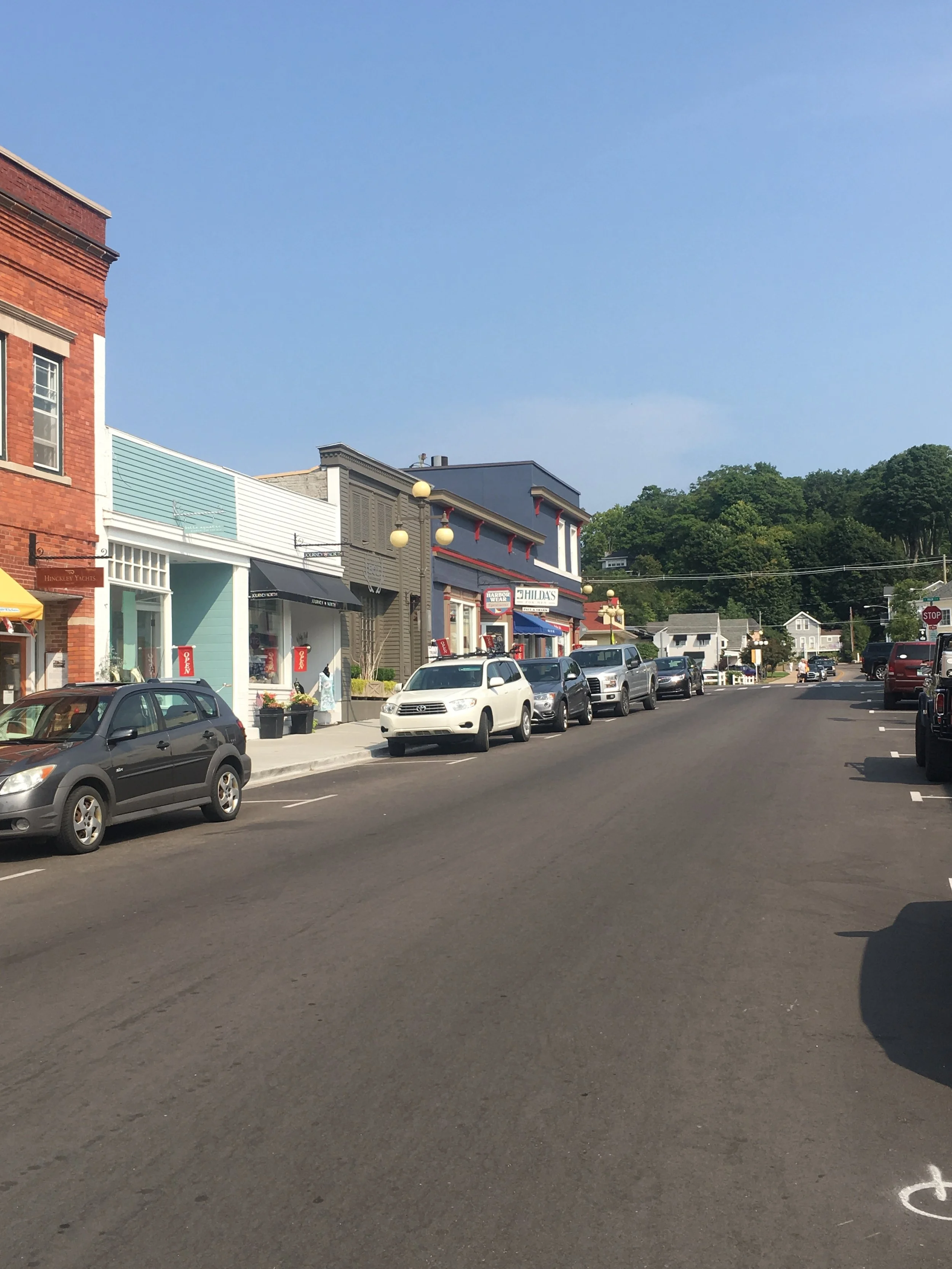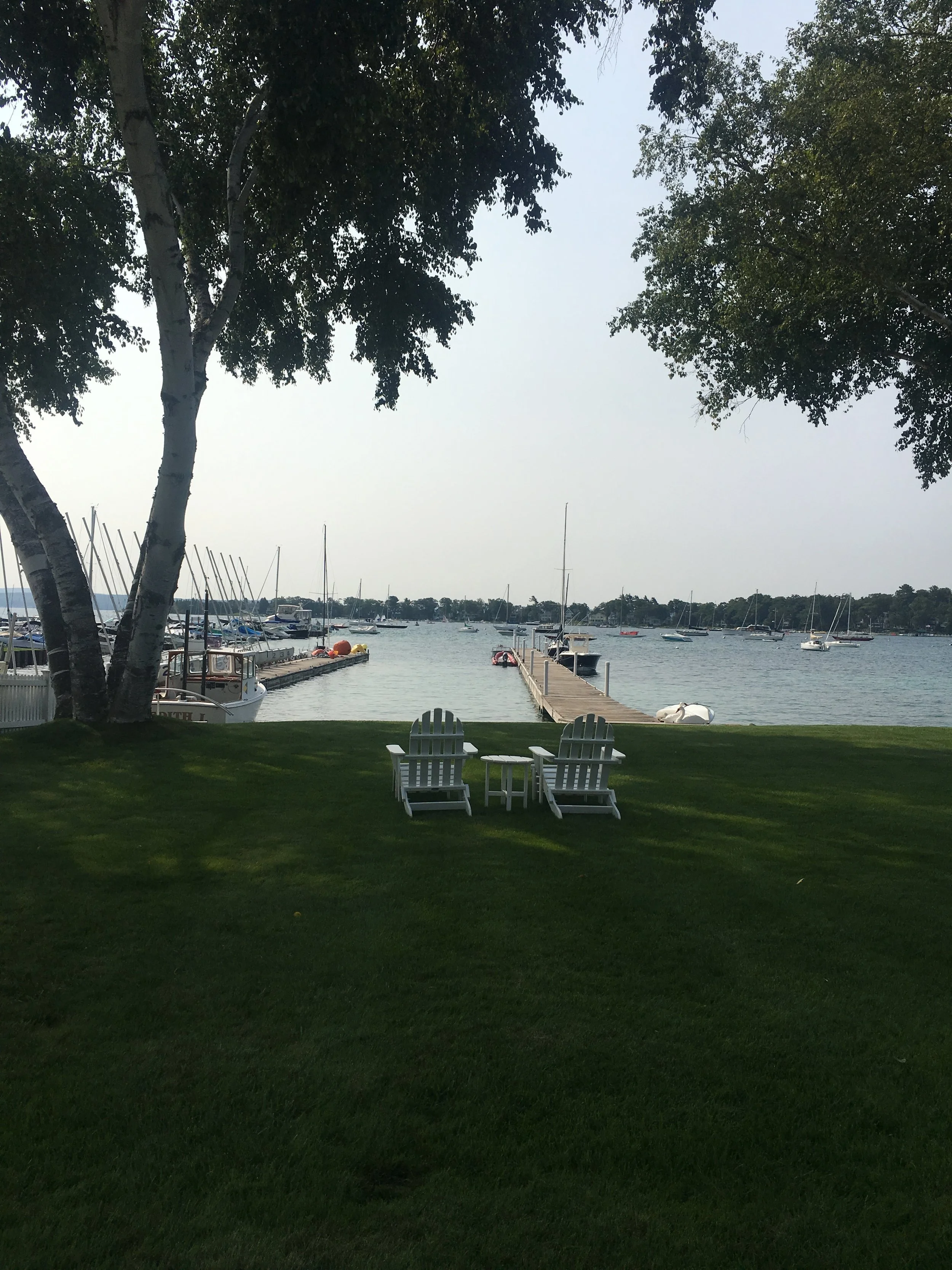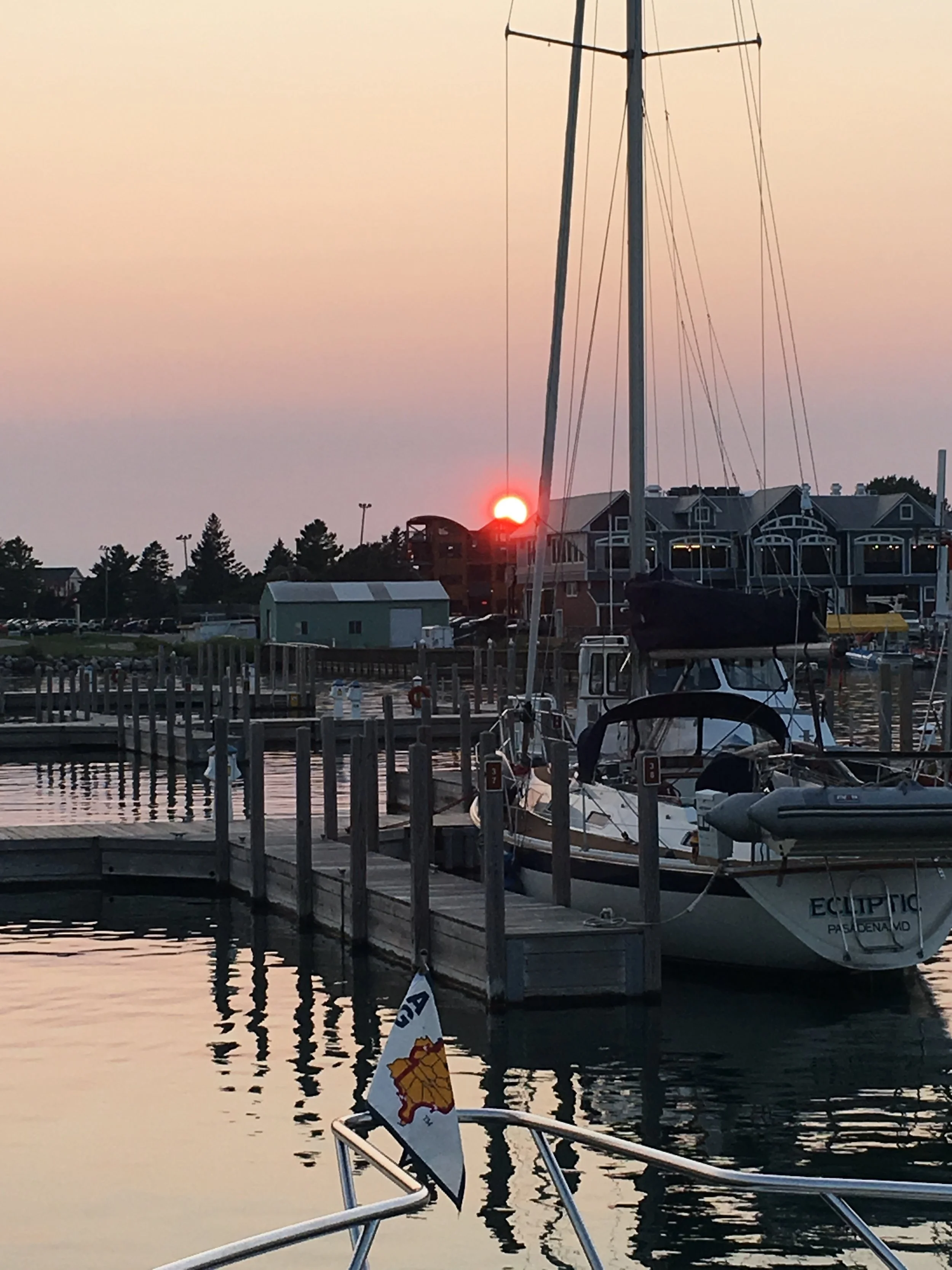 We had a 52 mile crossing and arrived in Harbor Springs, Michigan. As I write, we are at Irish Boat Works Marina and enjoying our time here. We went to a meeting last night at the City Hall. Again, always good to get to a meeting. Restores my faith, and feels like home. Harbor Springs is a gorgeous community. Beautiful homes and great shops. I went to the city beach today and relaxed while Jim did some boat maintenance and took care of some paperwork. When I returned, I tackled some work of my own. The forward berth of the boat is an area in our boat where we store the things we couldn’t live without when we left California. I store things on the bed and cover said things, with pillows. It’s not that much stuff, but it was time to go through it and throw some things away that we just don’t need or use. I’ve come to find out that I probably brought too many clothes, and I definitely have too many hangers. We chucked a small table, some old maps, a few pan lids, and a whole bunch of papers from the previous boat owner. It felt good to downsize one more time. It is a good day when you know that you just don’t need a whole bunch of stuff cluttering up your life.