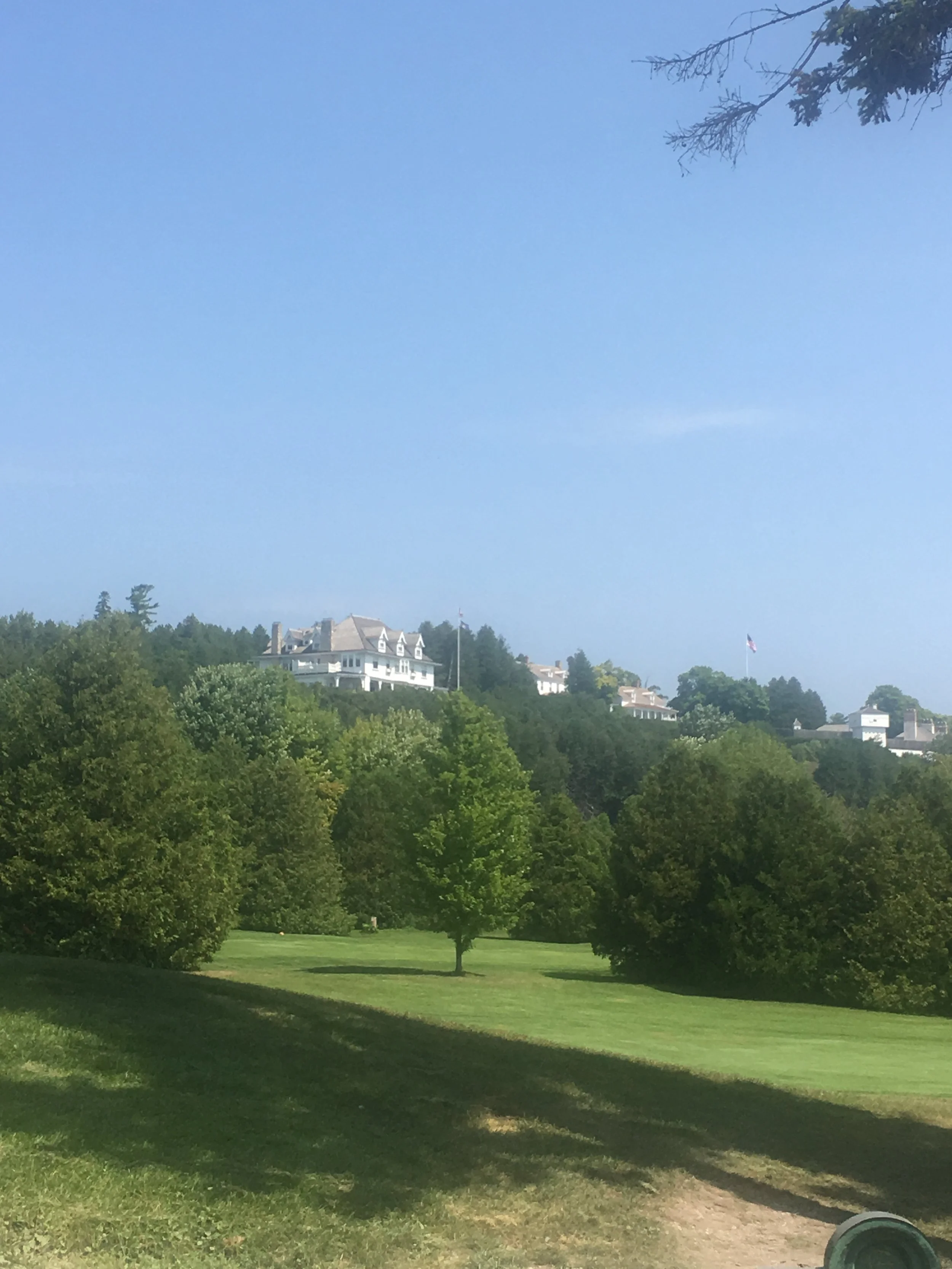 Because we stayed in the city and not on the island, we caught a Star-line Ferry, and took a 15 minute ride back across the straits to Mackinac Island. There are two spellings for Mackinaw. The Island is spelled Mackinac Island and the city, Mackinaw. Jim has had to correct me a hundred times because I kept saying Mack-e-nac, instead of Mackinaw. The French occupied the territory before the British, and spelled the name Mackinac but pronounced it Mackinaw. The British just spelled it the way it sounded, hence the two different spellings. Over time the city retained the “aw” spelling while the bridge, straights and island clung to the “ac” spelling. No matter how it is spelled, however, it is always pronounced Mackinaw! Anyway it’s pronounced, it’s a really cool place.