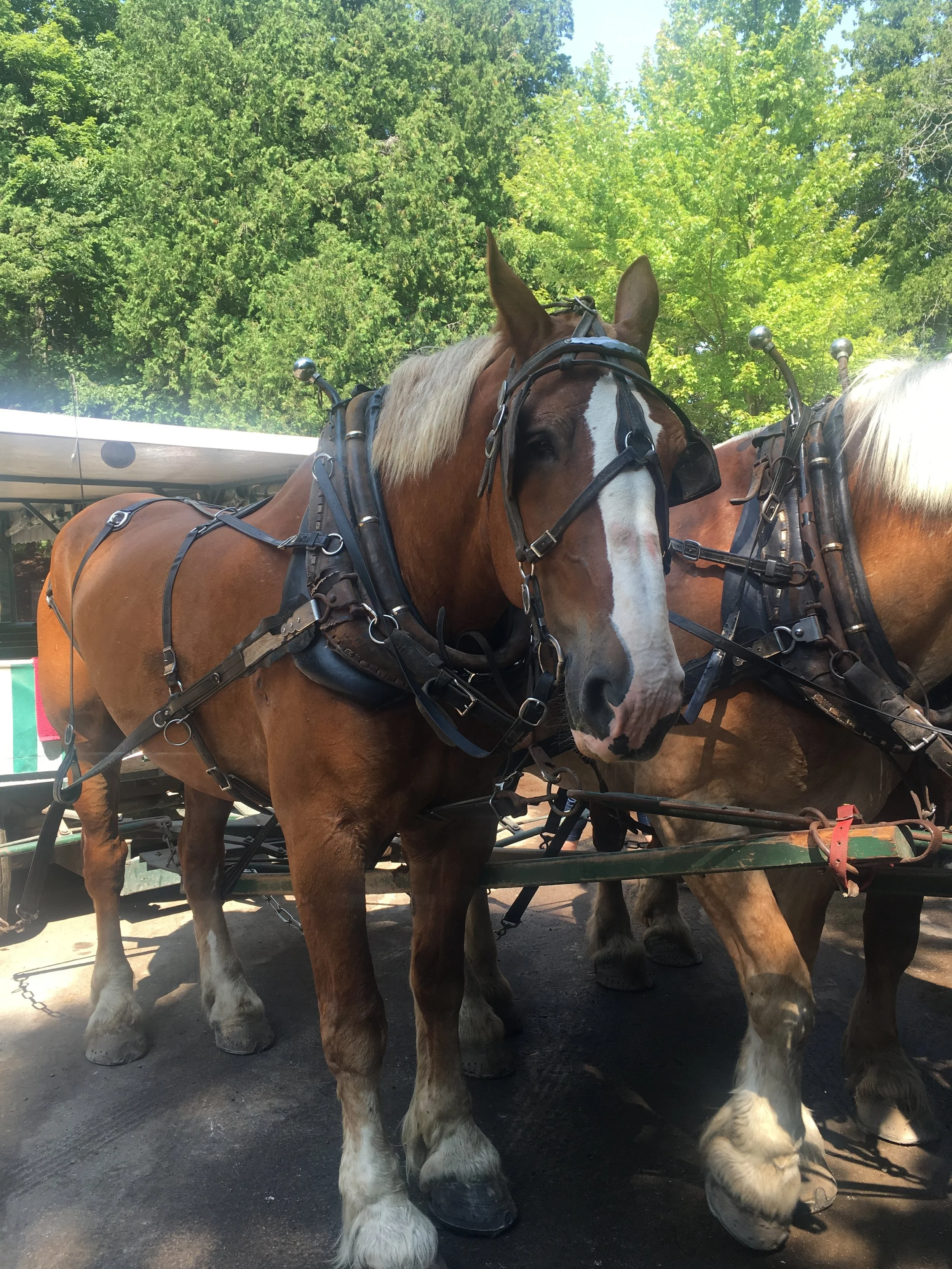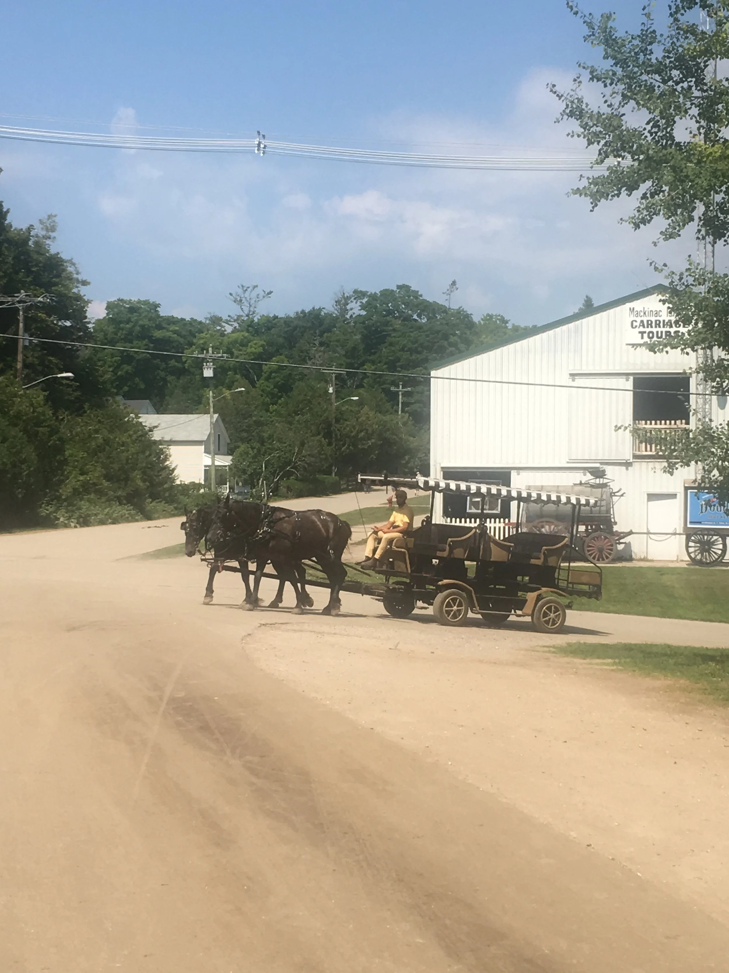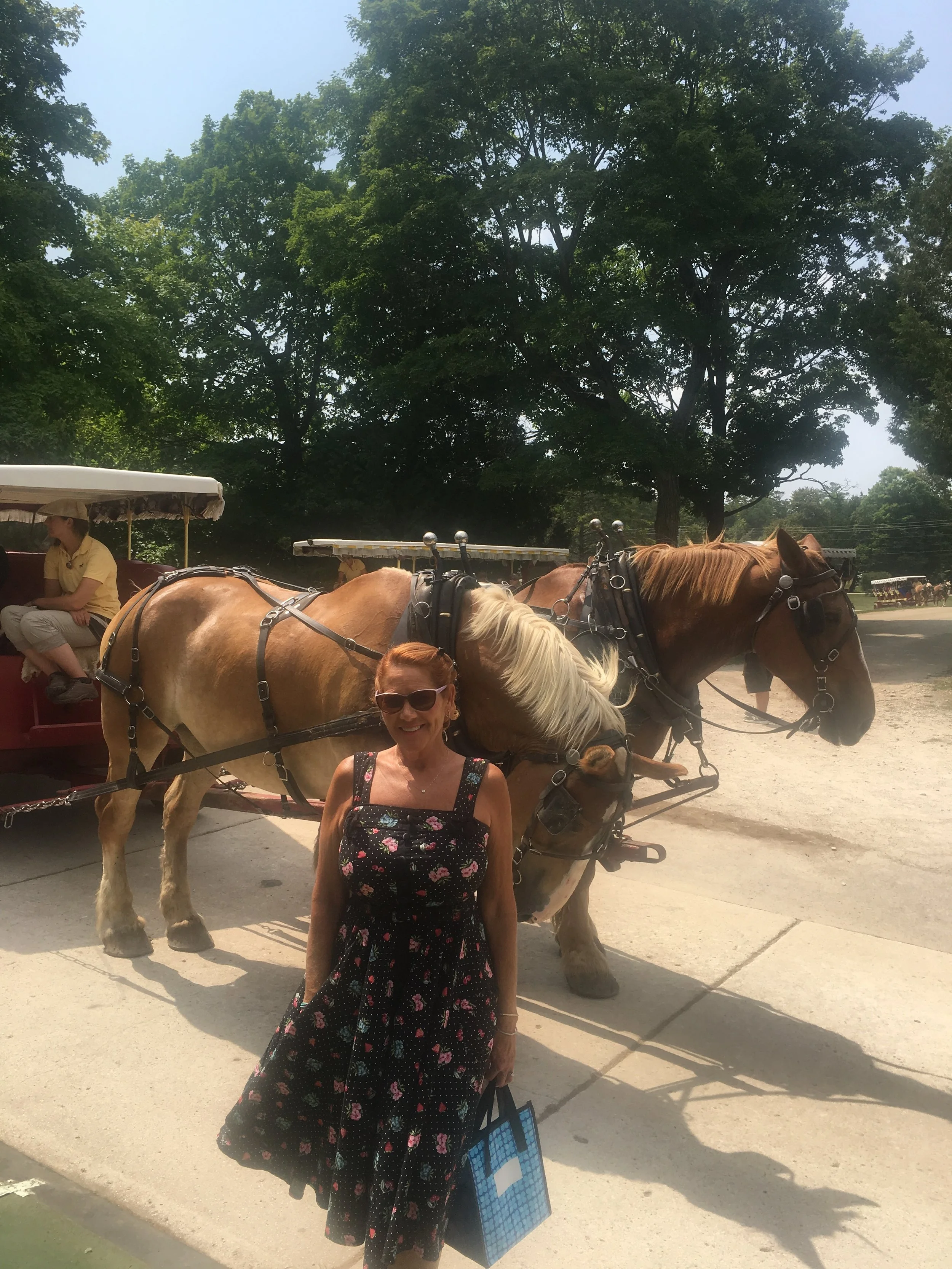 There are no automobiles here except for a fire truck and an ambulance. Horse drawn carriages can be seen everywhere and are used for trash pickup, cabs, funerals and weddings. There, people ride bikes, they skate, and they walk. I’m not a big fan of bike riding, I’m kind of clumsy on a bike, and I’m not a hiker! This is a huge island and if you want to explore you must do one of these two things. Or, you can do what we did. A horse drawn carriage tour of the downtown area of the island and through the state park itself. It was very informative and I feel like we got to see what we needed to, and learned a lot about the history of the island. The carriage took us up to the high point of the island where we were able to disembark for a few minutes and witness one of the most beautiful sights I have seen on this entire Great Loop Adventure. Arch Rock.
