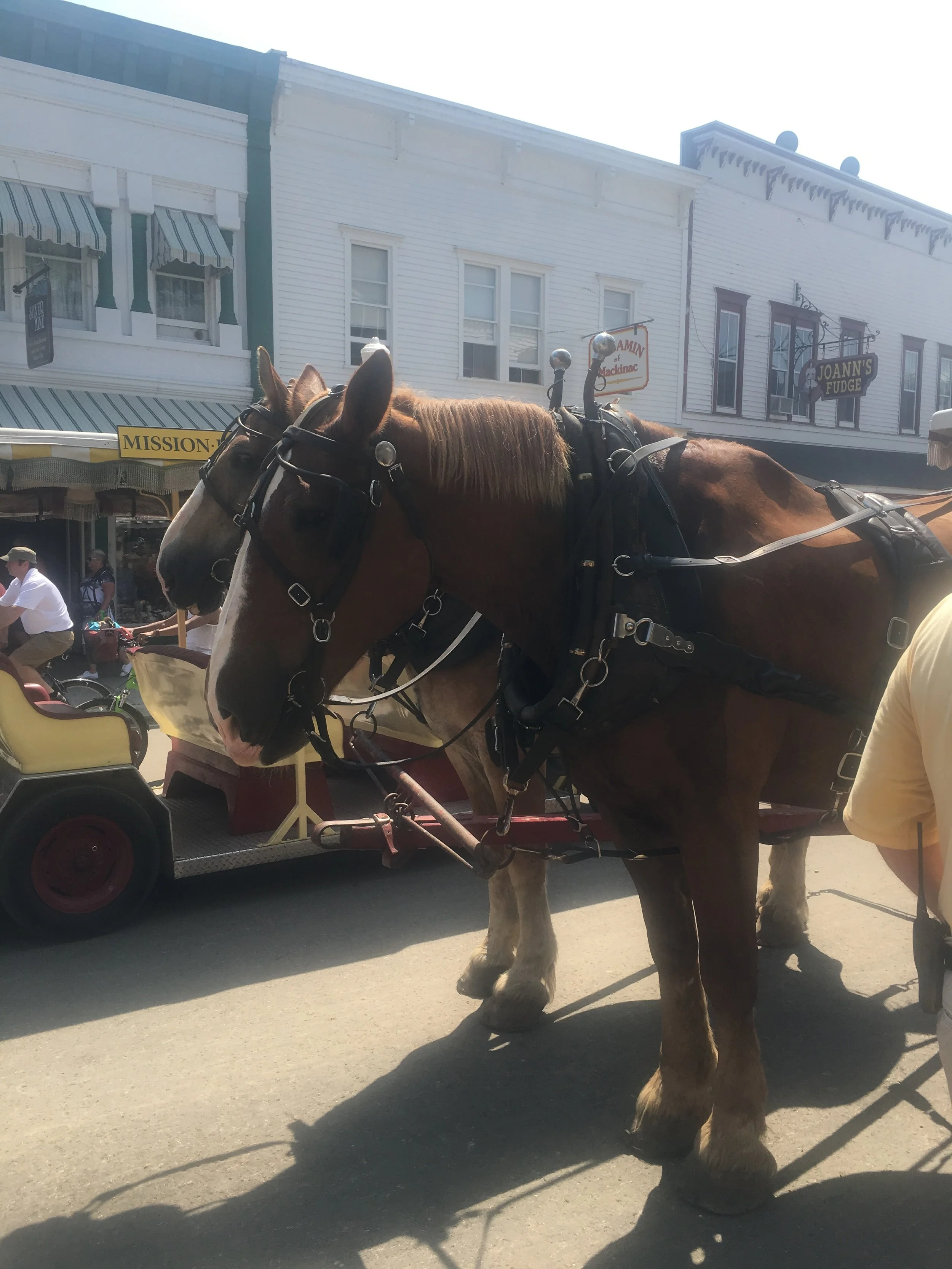 I think we both enjoyed our visit to Mackinac Island, but to be honest, it’s still summer here, and tourist season is still in full bloom. There were thousands of people here this day, and it kind of felt like I was at Disneyland. It was pricey, and lines for food and drink were long. We waited two hours for the carriage ride. I live on a boat. With Jim. Just us two. Busy places, and too many people make me anxious. I was glad to get home to the Happy Destiny!
