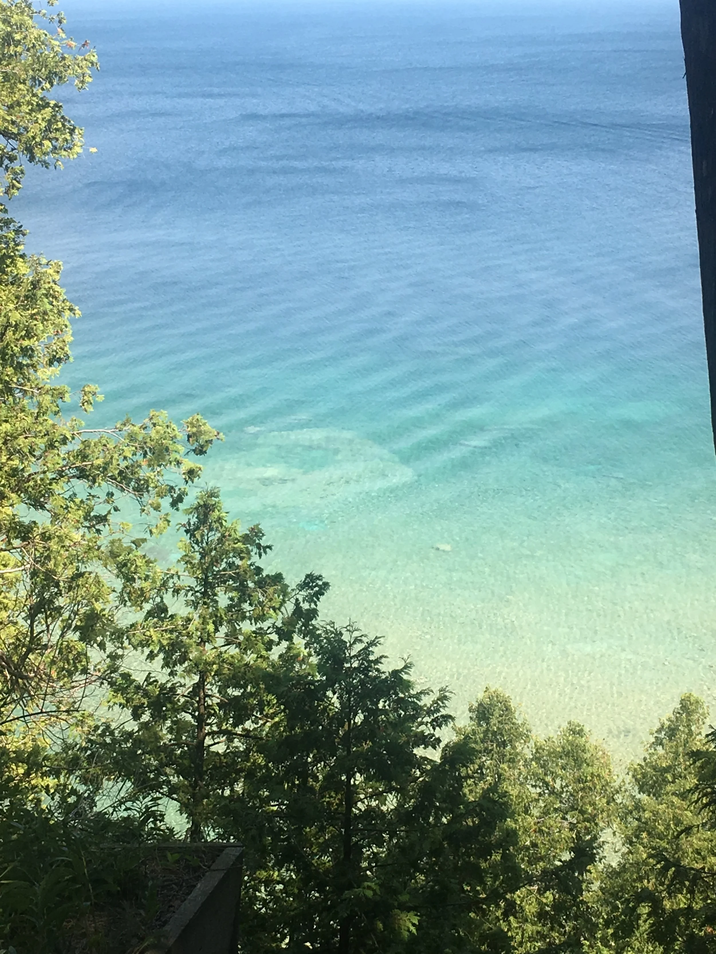 Arch Rock is a geologic formation on Mackinac Island. It is a natural limestone arch. To this day Arch Rock stands on the Lake Huron shoreline 146 feet above the water. The water was aquamarine in color, and even from that high up, it appears that you can see the sandy bottom. It was stunning.