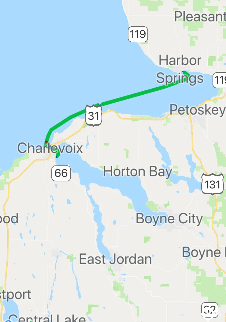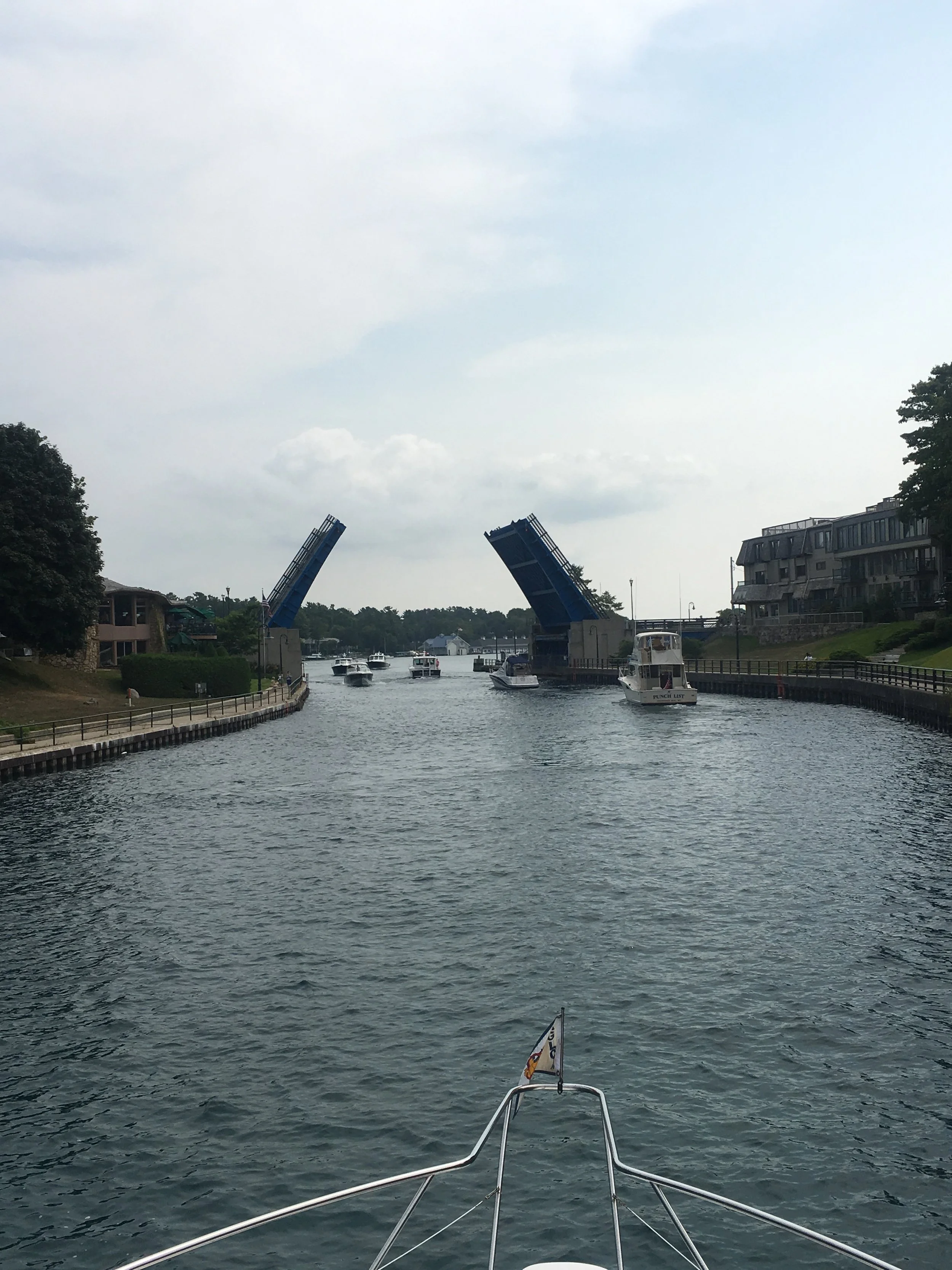 Friday morning took us to Charlevoix, Michigan. It was not a long trip. We are trying to head South, but found it difficult to secure a slip. The boating season here for local boaters is coming to an end, which means there are lots of boats out enjoying the water and more boats probably in their home slips preparing to winterize. So, marinas, at least this weekend are booked solid and have no room for transient boaters like us. We inquired in the office at Irish Boat Works, where we stayed the last few days, about hooking us up at their other marina in Charlevoix. They were able to get us in at the last minute, which was great. So, I’ve always wanted to go to Charlevoix. I just love the name!