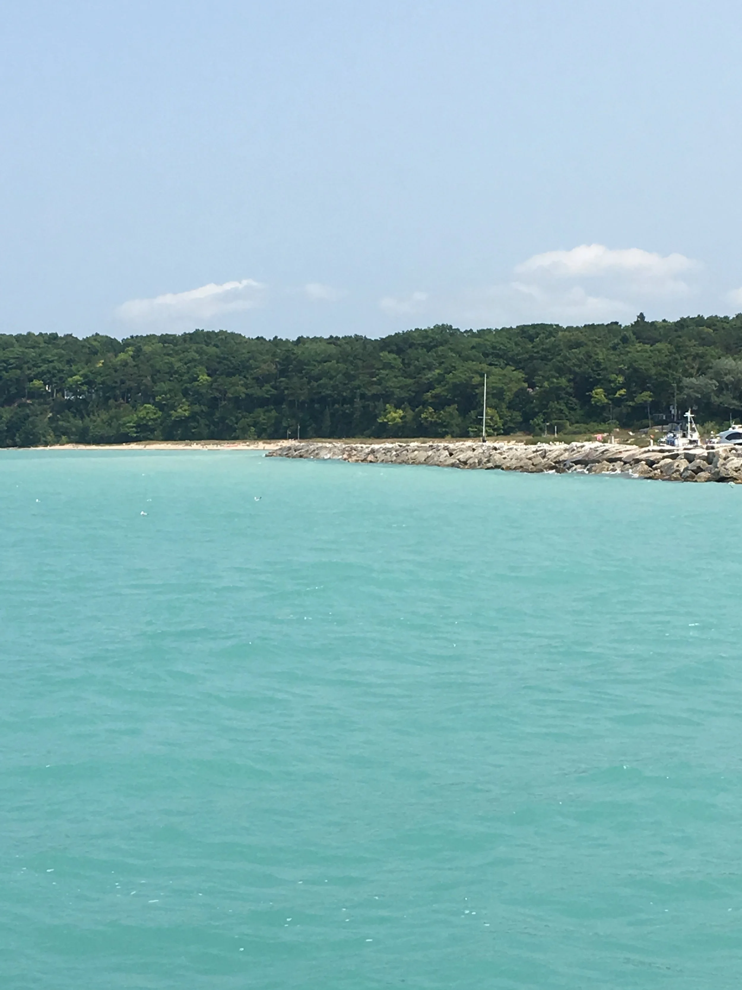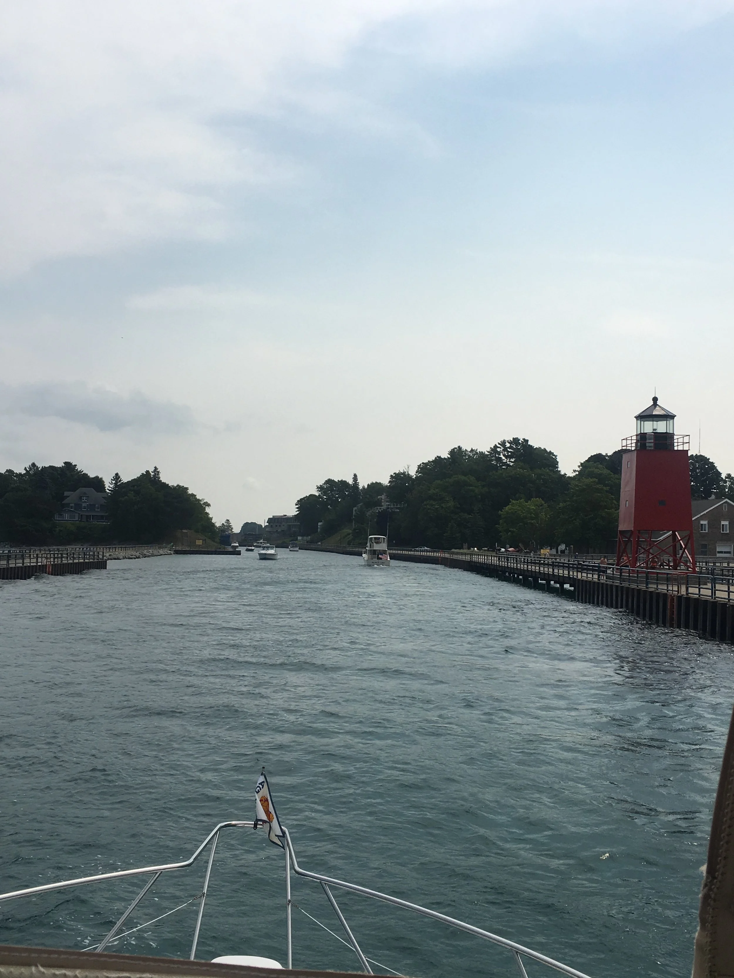 We have been back in the US for a week now. Lake Michigan is beautiful, and all the little towns we have ventured through, have been lovely. We are getting closer to Chicago. Another couple hundred miles. We are on target to arrive there by the first of September. We also are looking forward to Jennifer visiting us on the Happy Destiny for a week, and Jim and I will be flying to Anaheim on the 17th, so Jim can attend the Western States Opioid Summit that Social Model is hosting. I, for one, am looking forward to seeing my kids, my grandchildren, and our friends for a bit.