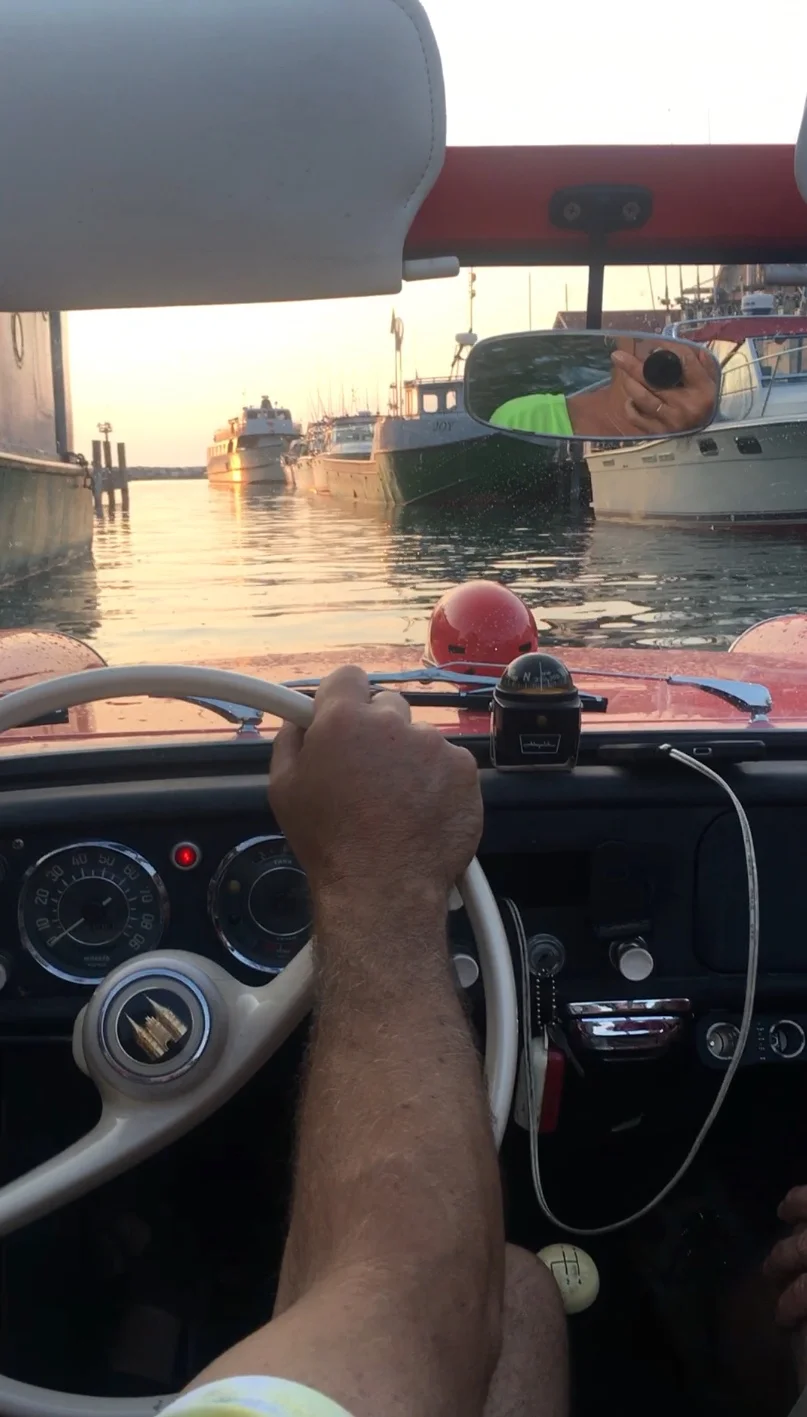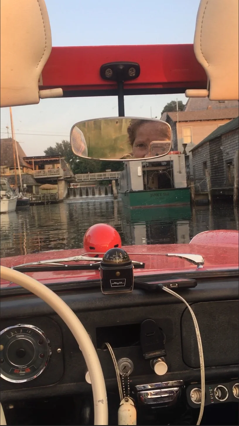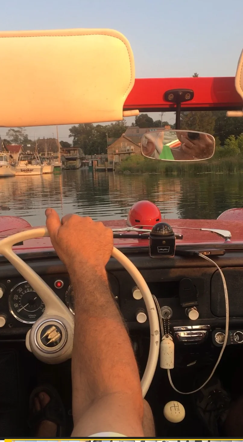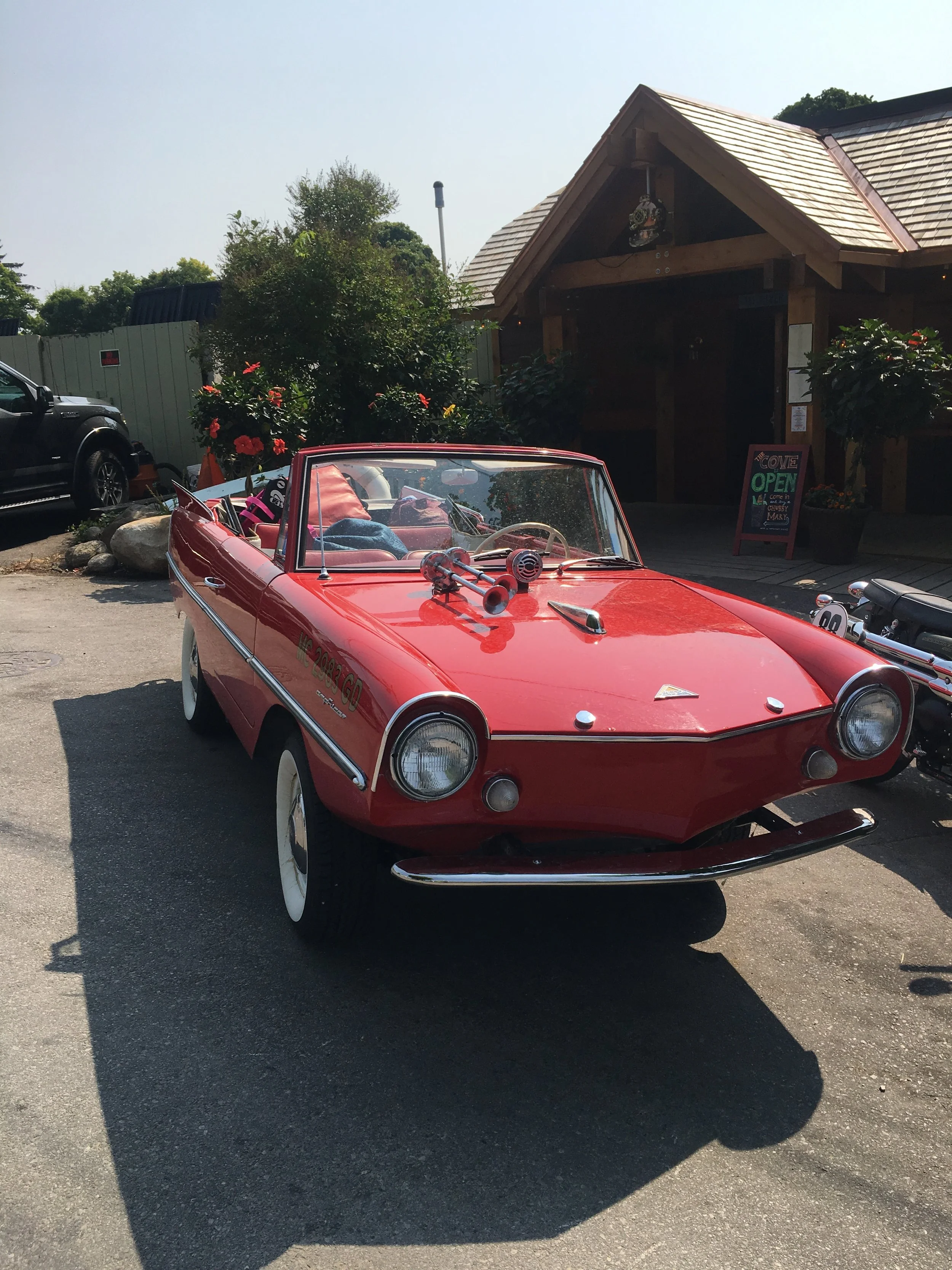So, the picture above, of the cute little red car? I got to take a ride in it! It is an Amphicar! A car and a boat in one! I went for a spin with Larry, the owner. It was super, duper cool!